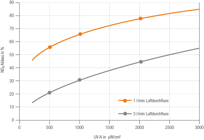 L'ampleur de la réduction de la concentration d'oxyde d'azote dans l'air dépend de paramètres tels que l'intensité lumineuse, la vitesse du flux d'air