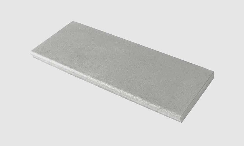 La dalle de bordure assure une finition parfaite à toutes les surfaces posées en dalles Titania. Elle convient tout particulièrement aux entourages de piscines grâce à son côté arrondi.
