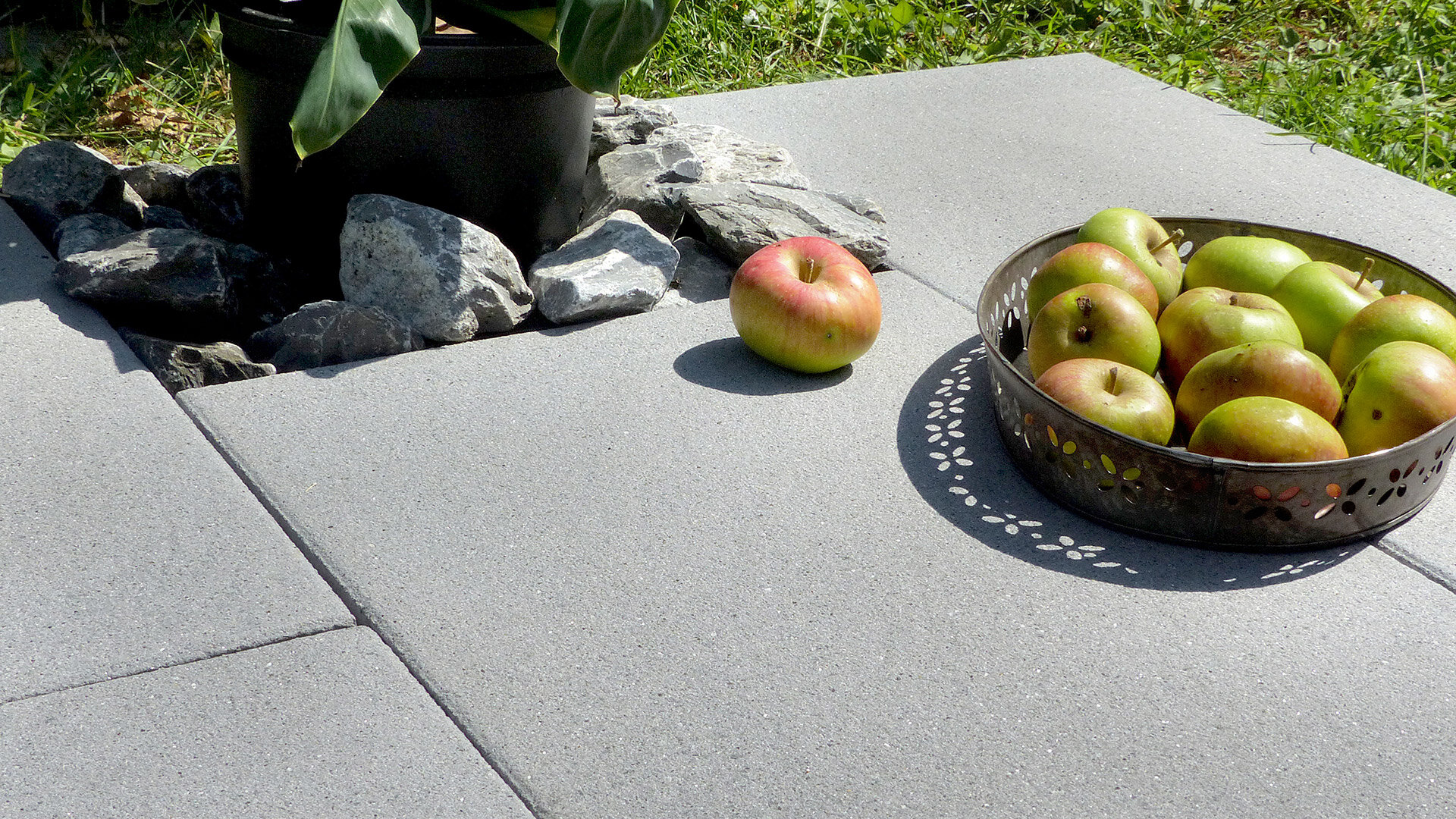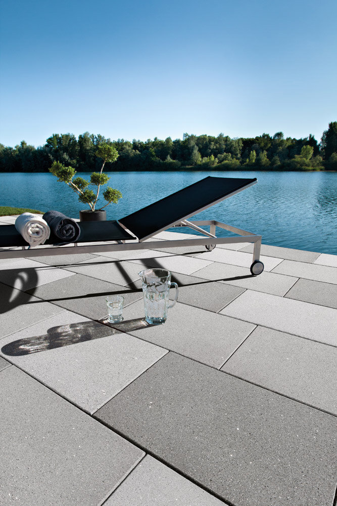 Les dalles de la série Estrella créent une ambiance scintillante. De petites paillettes incrustées dans la surface créent un effet de brillance qui évolue en fonction du point de vue ou de la lumière du jour. Les dalles Estrella sont protégées par le traitement anti-salissures «b.c.s» pour un nettoyage facilité.