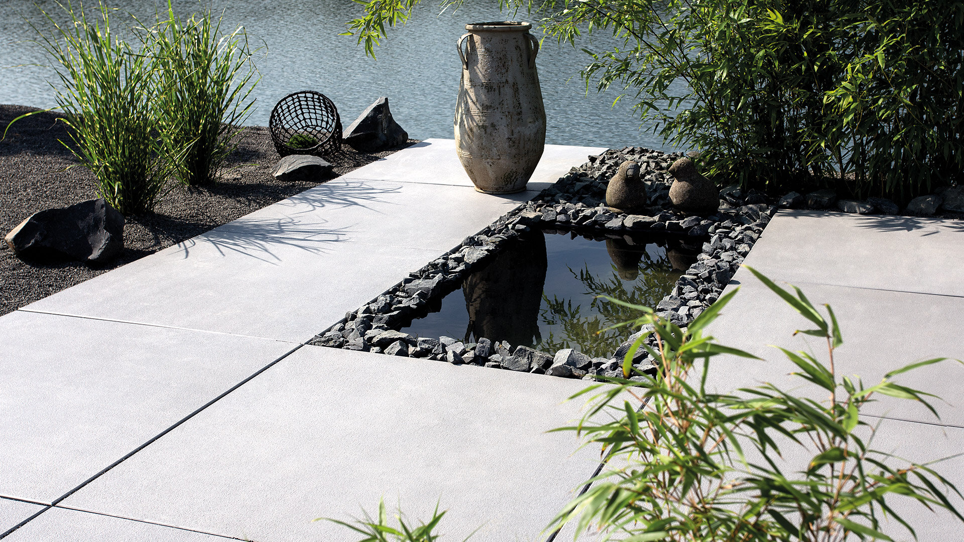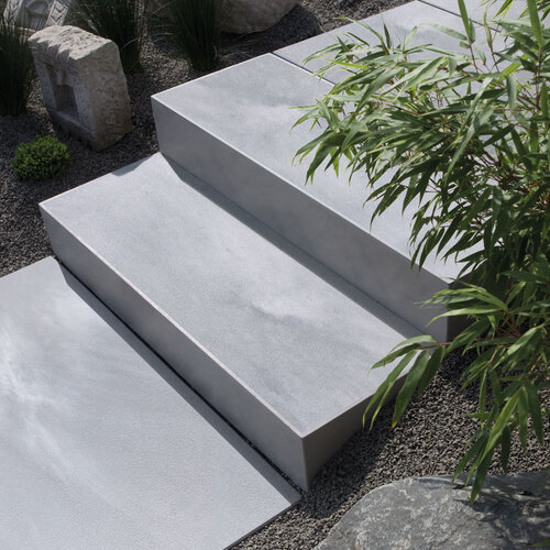 L’aspect esthétique, les dimensions généreuses et un matériau typique à la fois classique et moderne donnent un style particulier aux environnements architecturaux actuels. Les dalles légérement rugueuses sont particulièrement denses et homogènes. Les dalles Titania peuvent être posées avec des joints fins ou larges: l’utilisation de graviers brillants peut être du plus bel effet.