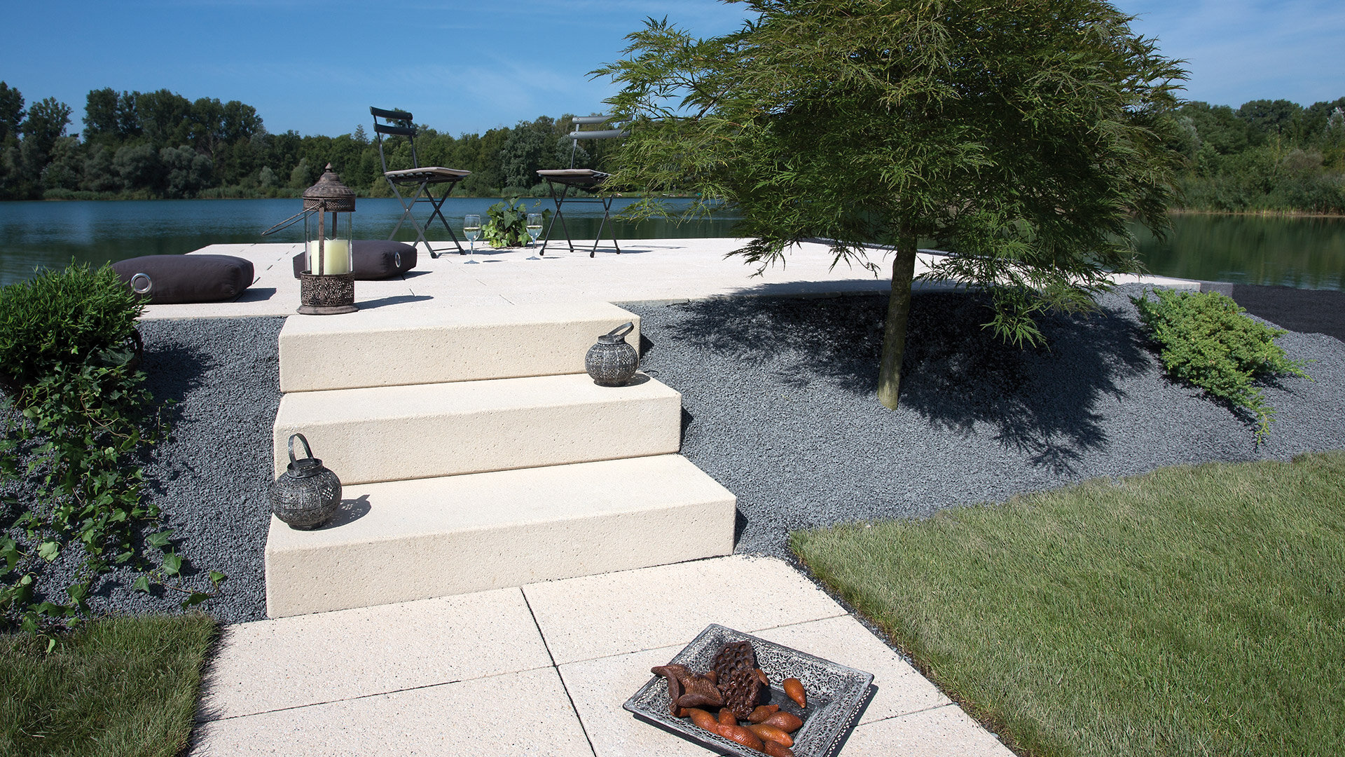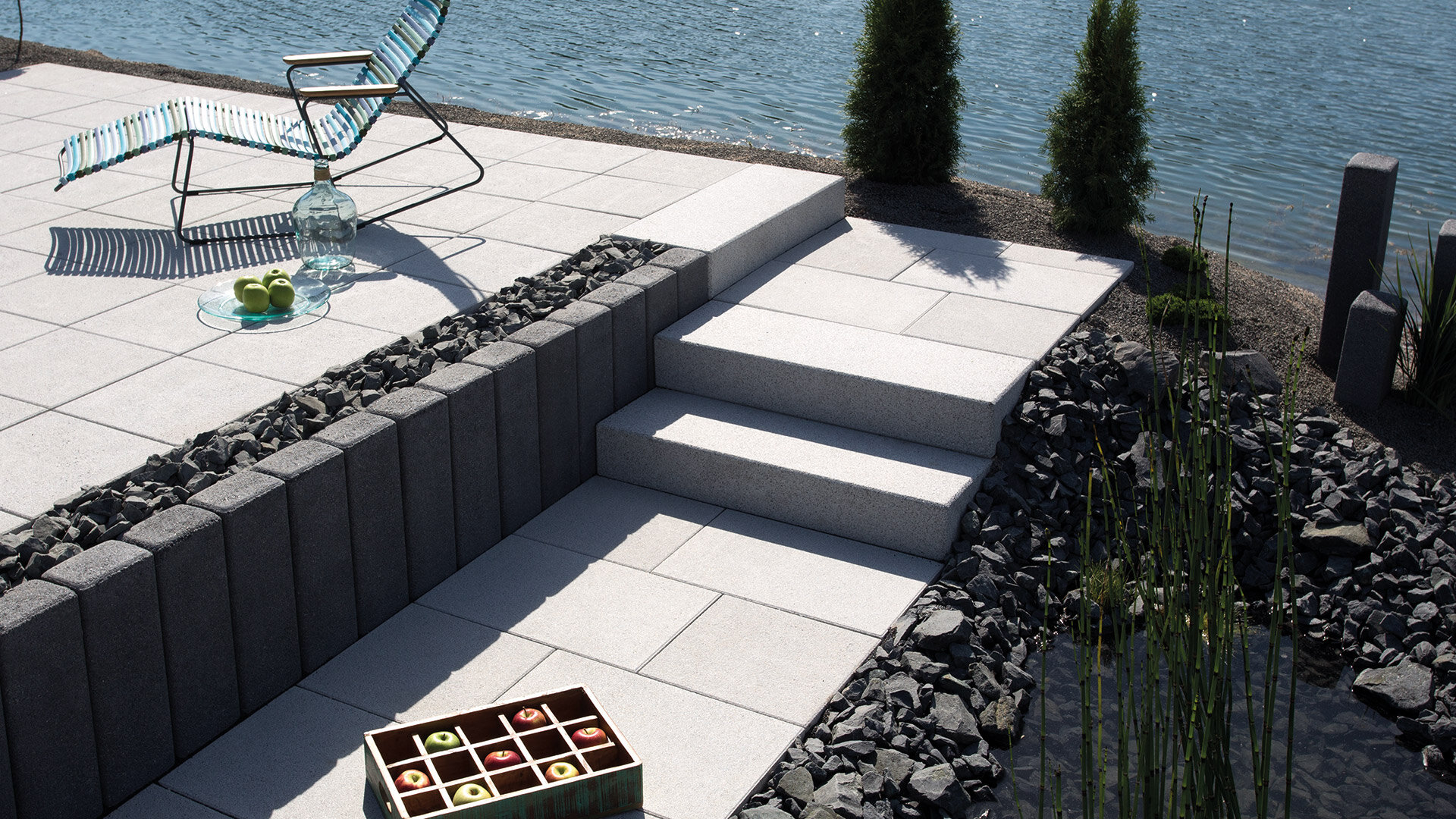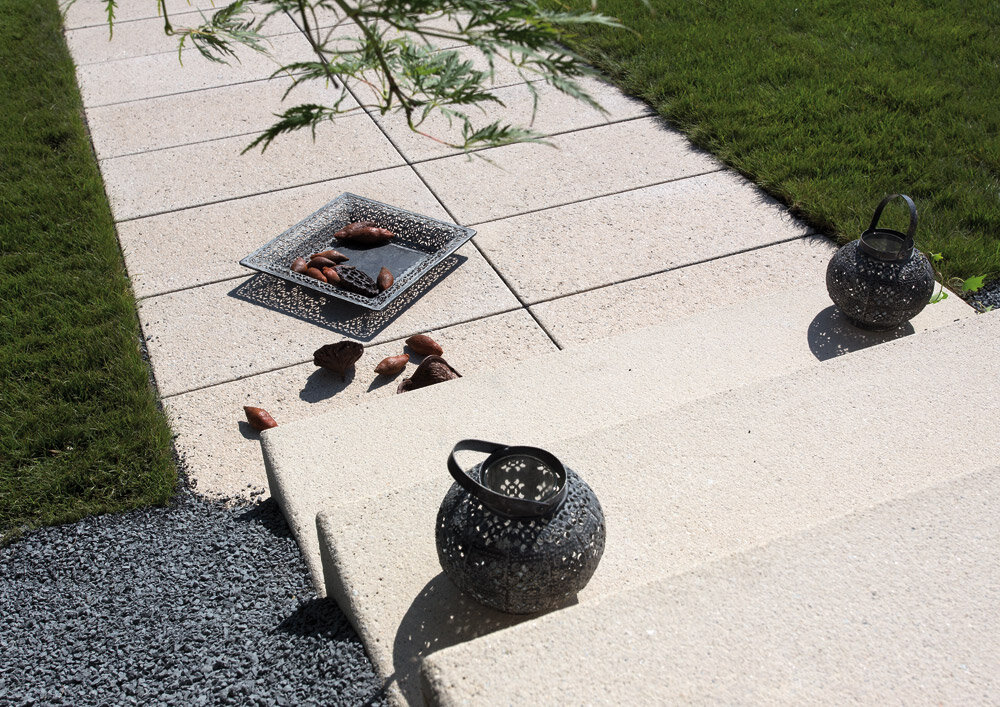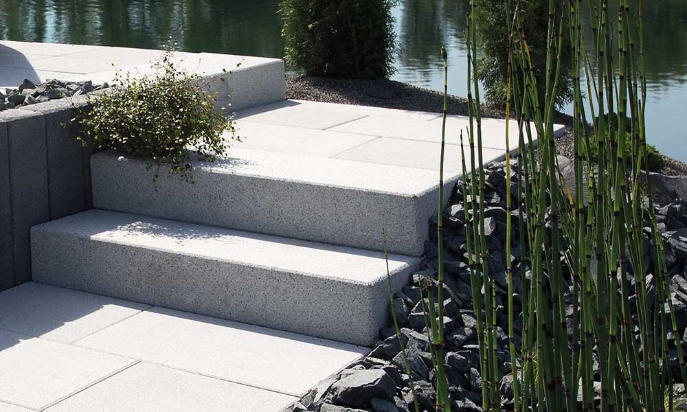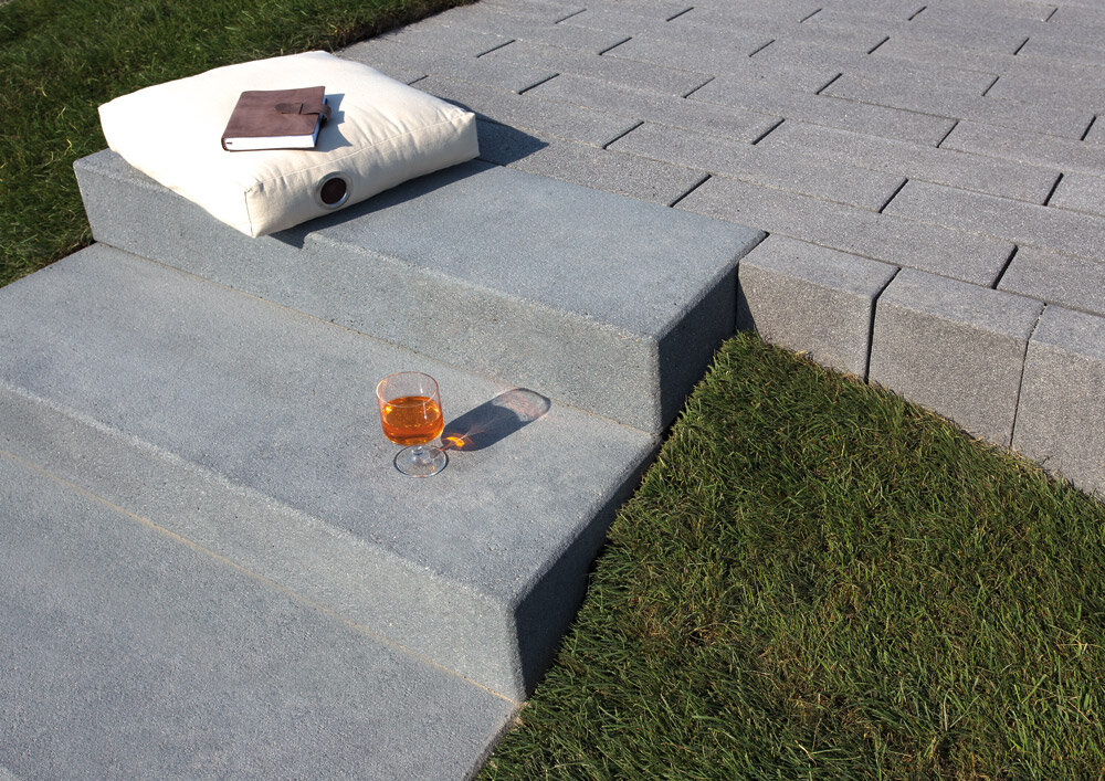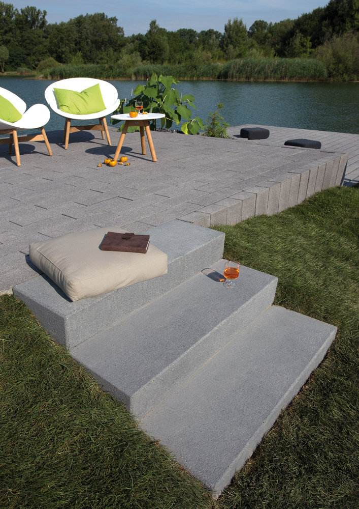 Nouveauté: les blocs-marches light, moins lourds, et ornés de surfaces délicatement grenaillées.