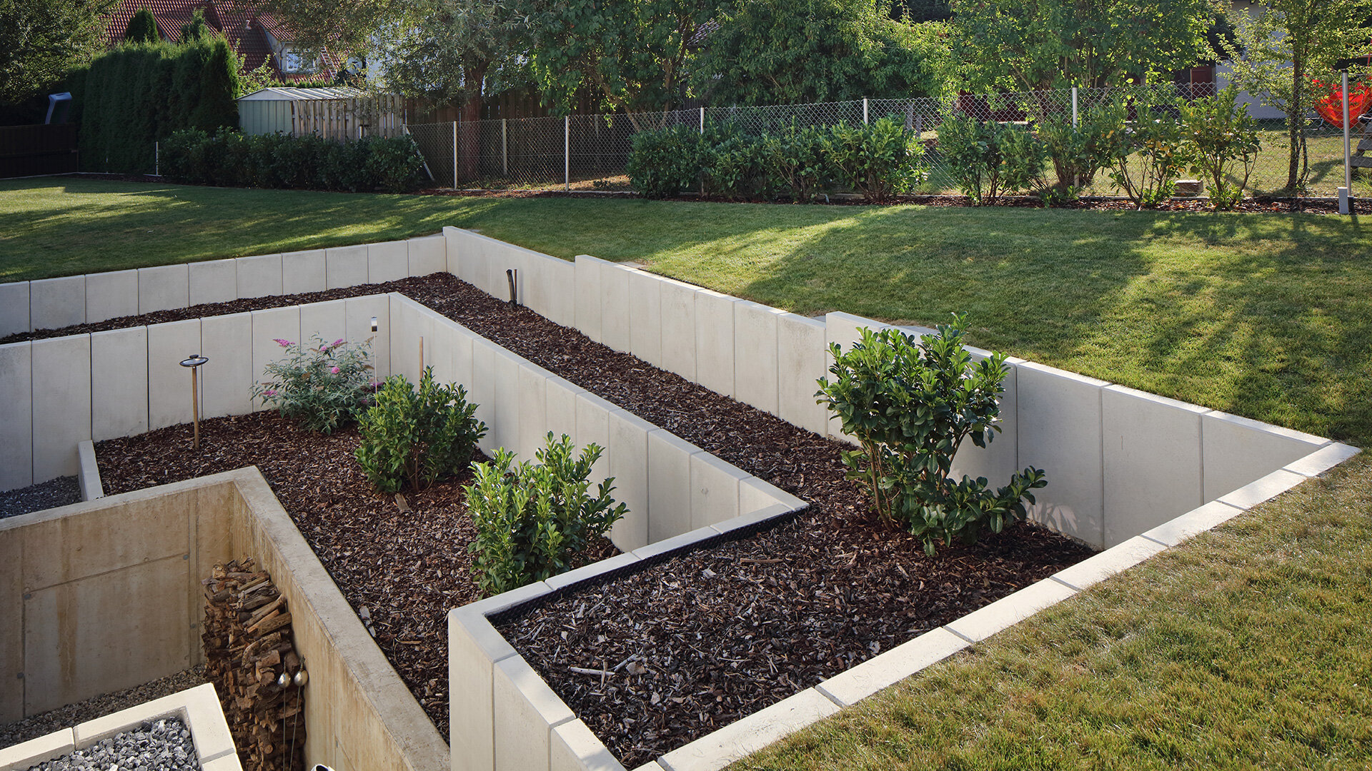Les murs L-Tec sont des murs de soutènement. Ils sont parfaits pour combler une différence de niveau, par exemple pour tenir un talus ou pour réunir différentes surfaces de manière élégante. Avec leurs deux parois lisses, les produits L-Tec peuvent être visibles des deux côtés. Ils peuvent donc être utilisés comme brise vue ou comme mur.