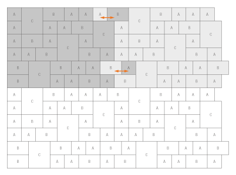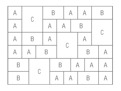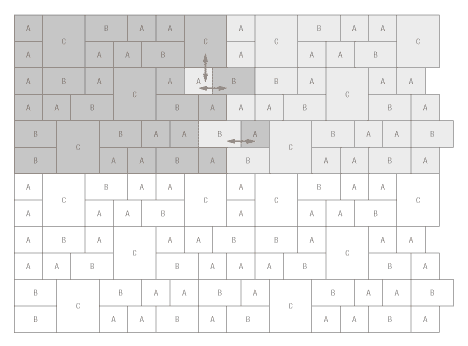 Total: 32 pièces par rangée | 1,023 rangées / m² |