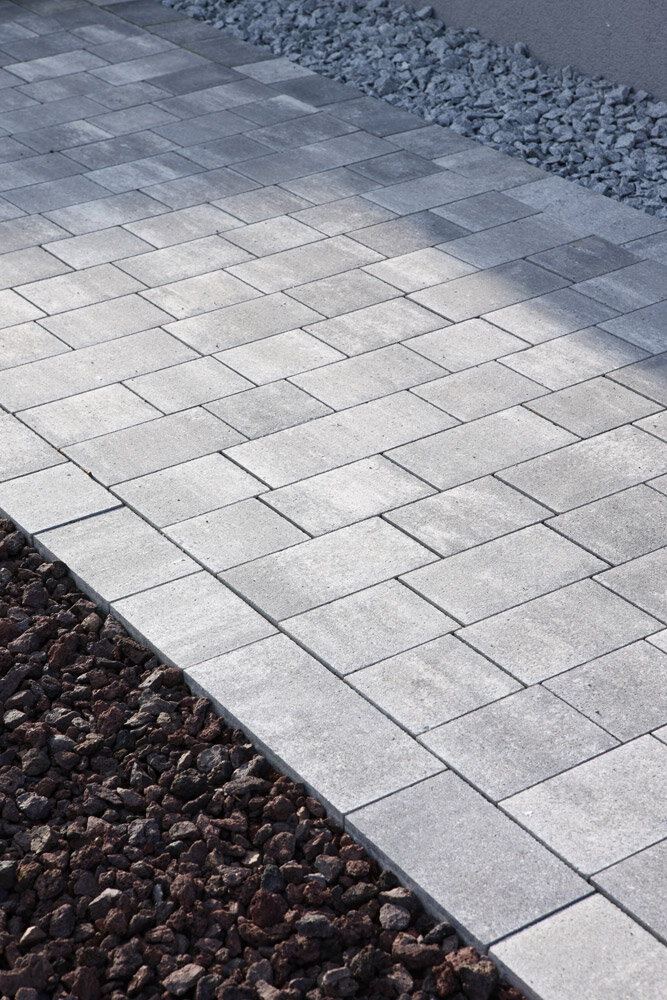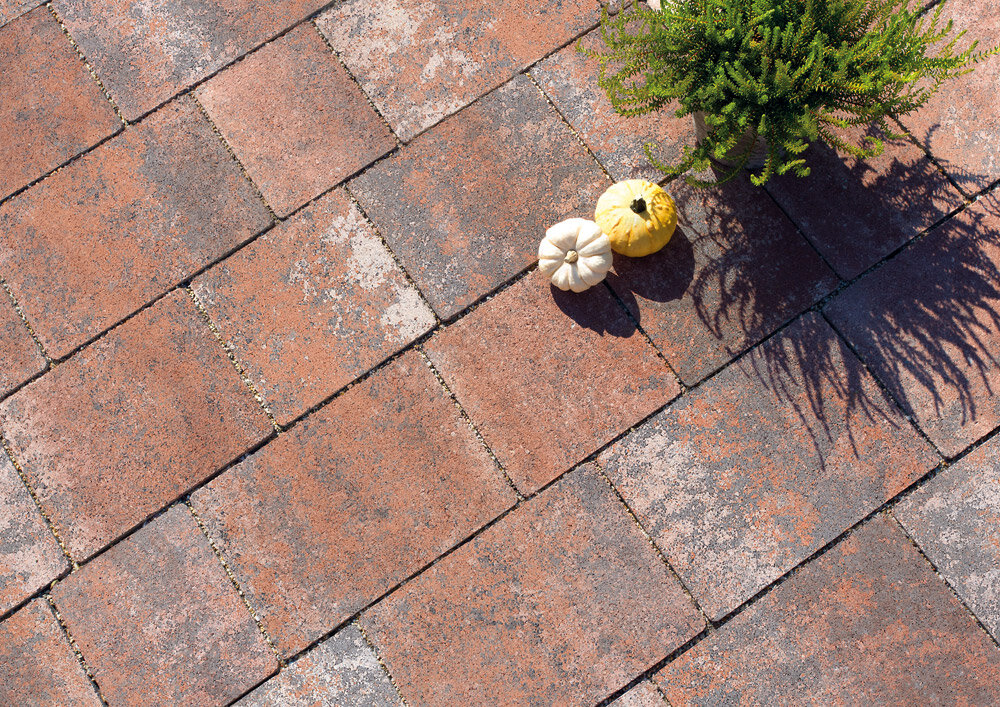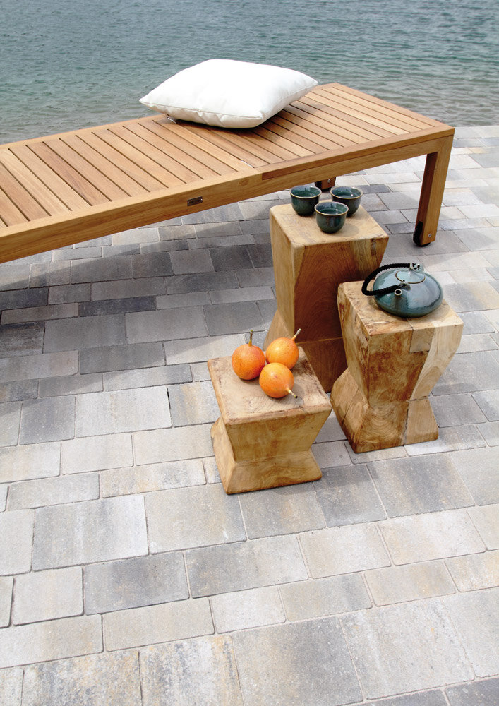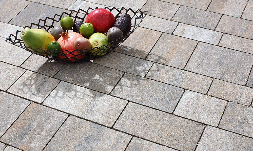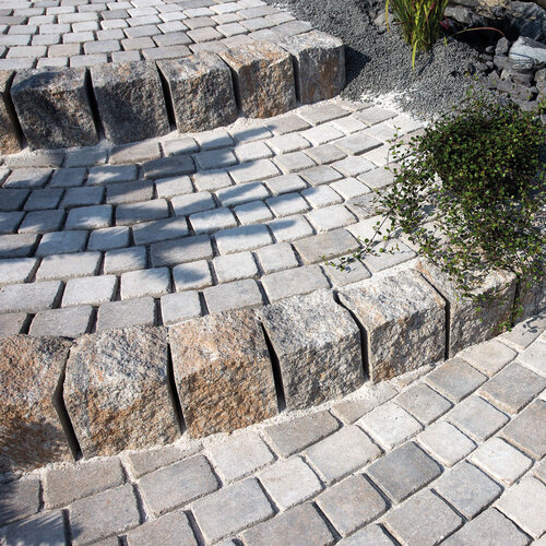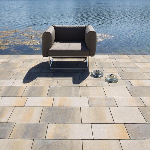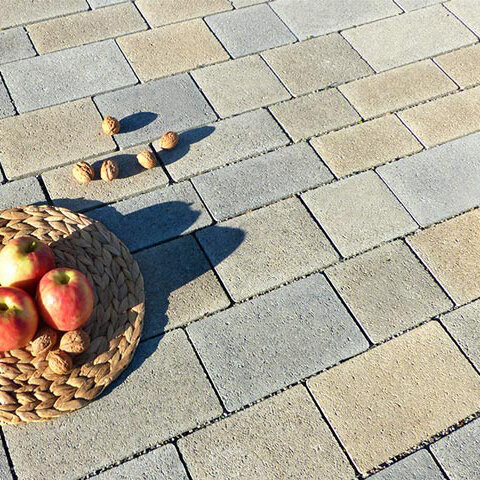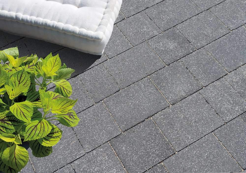 Le mix de formats , composé de 4 formats différents, permet de réaliser des surfaces d'aspect équilibré . Différentes longueurs de pavés ainsi qu'une finition à arêtes vives créent une certaine vivacité dans la pose . Les taquets latéraux présents sur le pourtour des pavés assurent la stabilité de la surface.