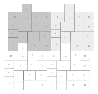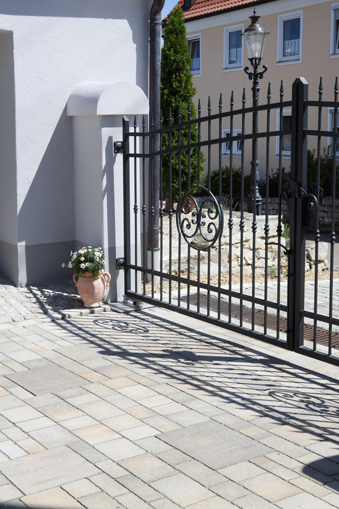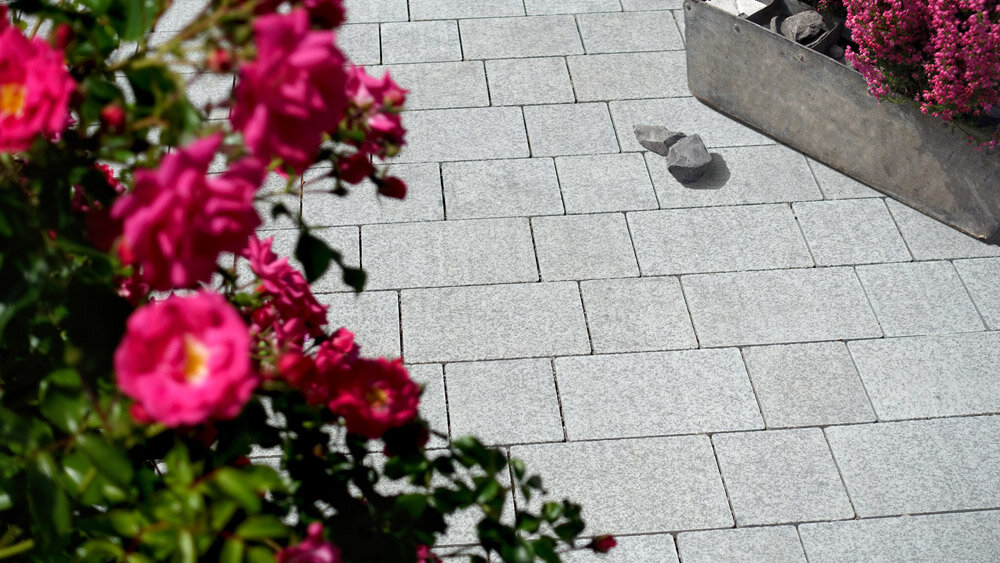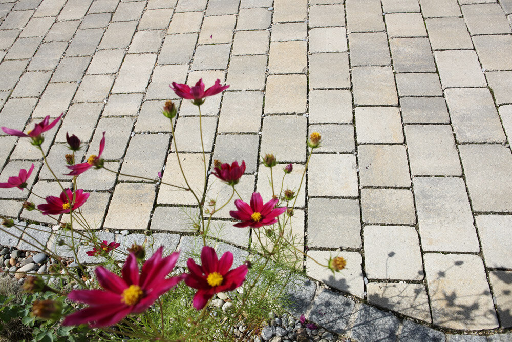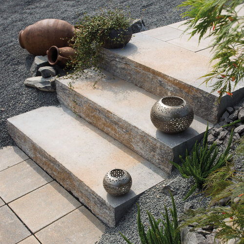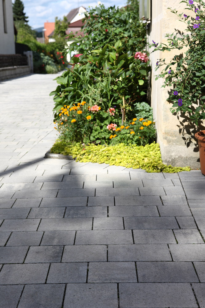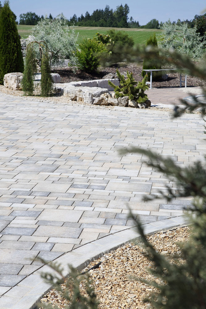 Le mix de formats , composé de 4 formats différents, permet de réaliser des surfaces d'aspect équilibré . Différentes longueurs de pavés ainsi qu'une finition à arêtes vives créent une certaine vivacité dans la pose . Les taquets latéraux présents sur le pourtour des pavés assurent la stabilité de la surface.