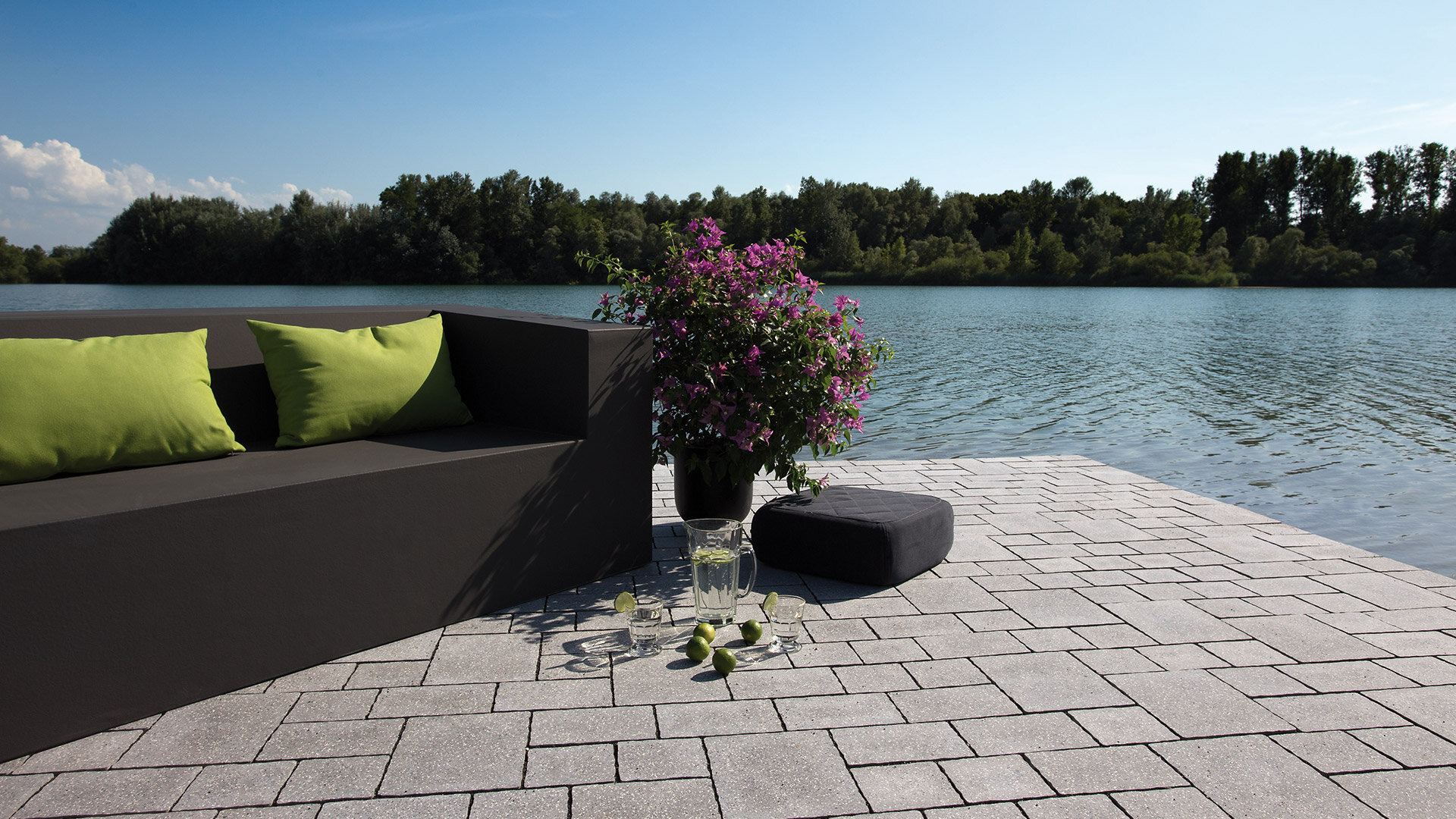 Trento Selection est un Mix haut de gamme de 3 formats de pavés différents. Caractérisé par une surface inimitable en pierre naturelle structurée et grenaillée, des chanfreins irréguliers, il sera un précieux allié pour vos aménagements.
