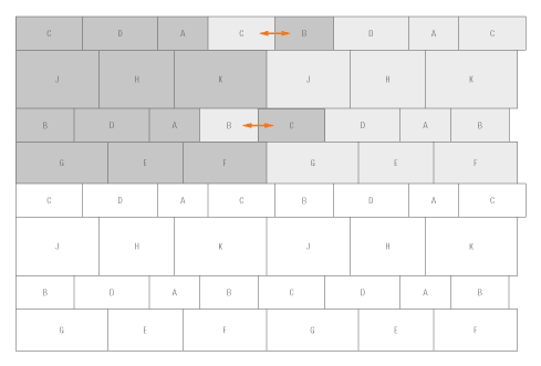 Total: 14 pièces par rangée | 1,042 rangées / m² |