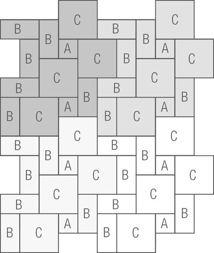 Total: 14 pièces par rangée | 1,042 rangées / m² |
