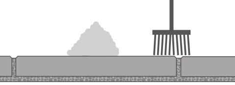 Les dalles sont légèrement frappées avec un maillet en caoutchouc pour être mises en place. Un remplissage complet du joint est obtenu en balayant et en complétant régulièrement le matériau des joints.