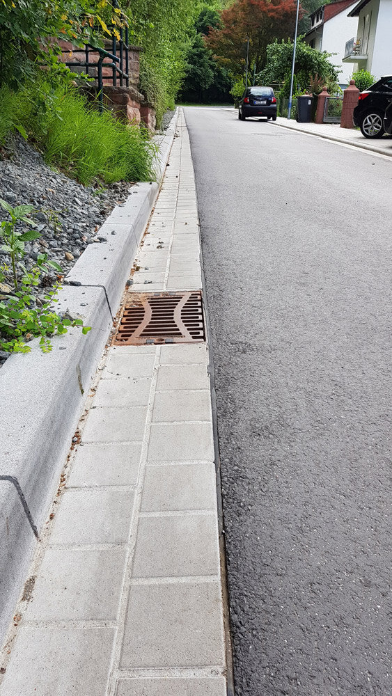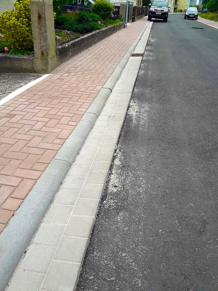 Le système de caniveaux en 2 éléments facilite la réalisation des jonctions entre zones circulées et trottoirs.
