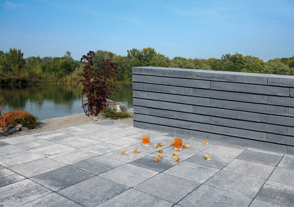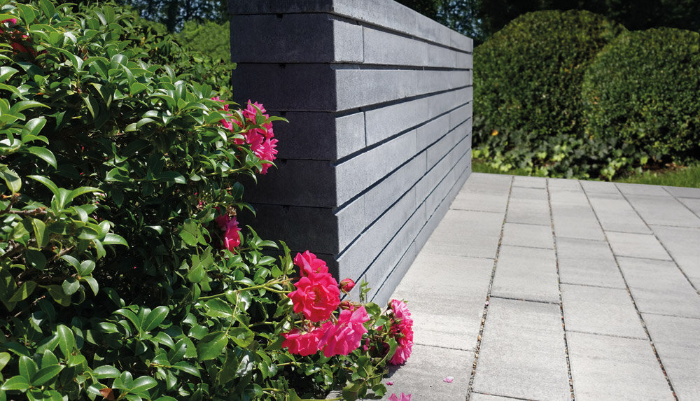 Elles donnent l'impression de flotter : les différentes pierres du mur PHARO MUR. Ce design particulier est obtenu grâce aux joints d'ombre horizontaux et profonds. Mais ce n'est pas tout. Une certaine légèreté est également perceptible. La géométrie élancée du format, combinée à la surface sobre du béton, donne naissance à un élément de base extrêmement rectiligne qui s'harmonise à merveille avec l'architecture moderne. Le mur se distingue en outre par sa facilité de mise en œuvre. L'élément de base est conçu comme un bloc creux à quatre compartiments. Le transport et la manipulation sont ainsi nettement plus faciles. Une pierre de recouvrement massive garantit une finition parfaite du mur. La largeur du mur est de 17,5 cm.