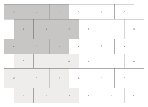 Le mélange de formats généreux du Sortett Selection XL confère aux surfaces un caractère spacieux. 4 grands formats assortis à 2 largeurs de rangées différentes créent la modernité tout en permettant une moindre proportion des joints.