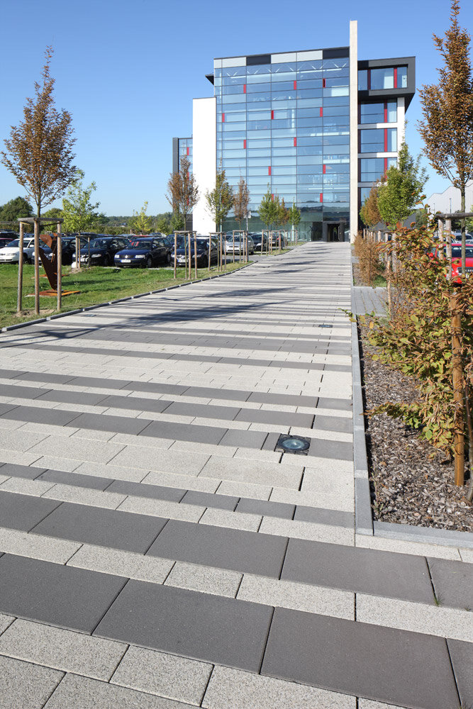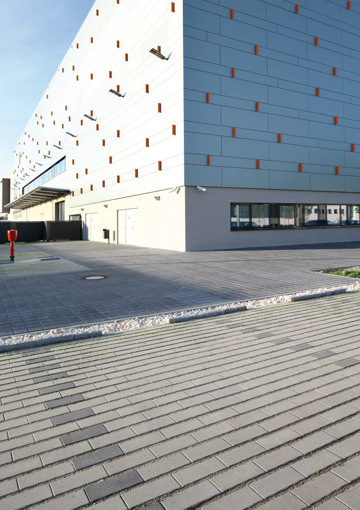 - Pavé Vista Green ( en tant que pavés à engazonnement ) avec des joints longitudinaux de 2,5 cm de large